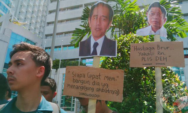 Dalam aksinya ini para mahasiswa membawa pataka dan poster bergambar Presiden Jokowi dan Menteri BUMN Rini Soemarno yang di dalamnya terdapat kalimat kritis menolak proyek kereta cepat ini.