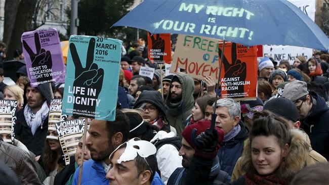 Hampir 1.000 pengunjuk rasa turun ke jalan di ibu kota Jerman, Berlin, untuk menunjukkan dukungan mereka kepada para pengungsi, memprotes rasisme dan Islamofobia.