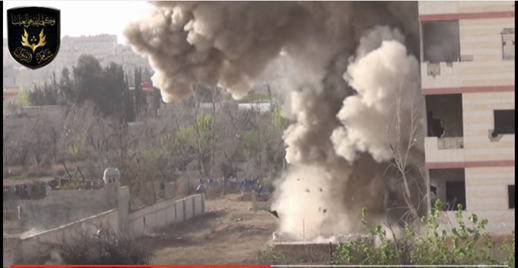 SALAM-ONLINE: Brigade Sham al-Rasoul pada Ahad (27/3) meledakkan sebuah terowongan milik milisi Syiah pendukung setia rezim Basyar Asad di selatan ibu kota Damaskus, Suriah.