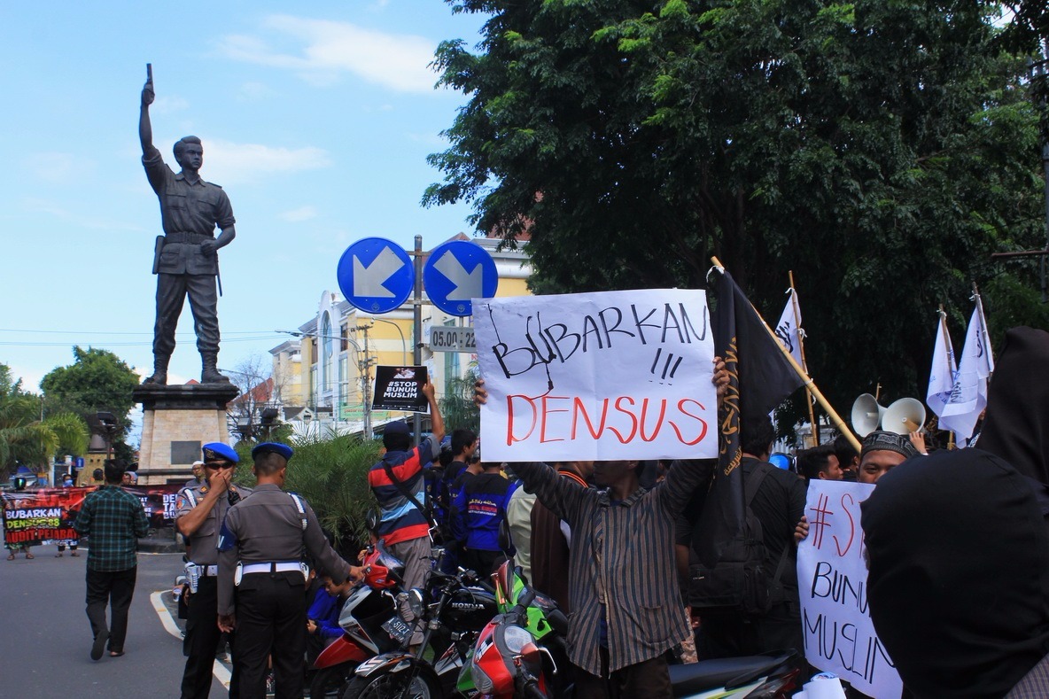 Alasannya, berdasarkan data dari Komnas HAM, terdapat 118 orang yang telah meninggal dunia di tangan Densus 88. “Berita terkini adalah kematian Siyono warga Cawas Klaten yang meninggal dunia dengan luka-luka pada tubuhnya karena bekas penyiksaan yang dilakukan oleh Densus 88,” kata Koordinator Aksi, Abu Daud.