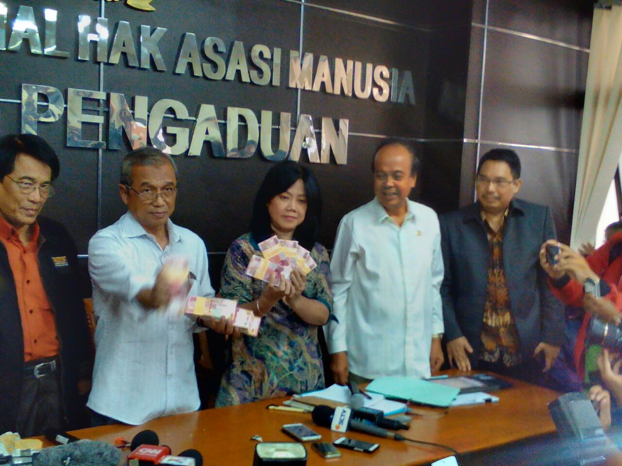 JAKARTA (SALAM-ONLINE): Ketua PP Muhammadiyah bidang Hukum dan HAM Prof Dr Busyro Muqoddas secara resmi membuka uang dua gepok pemberian polisi kepada keluarga Siyono saat konferensi pers bersama Komnas HAM dan sejumlah LSM, Senin (11/4).