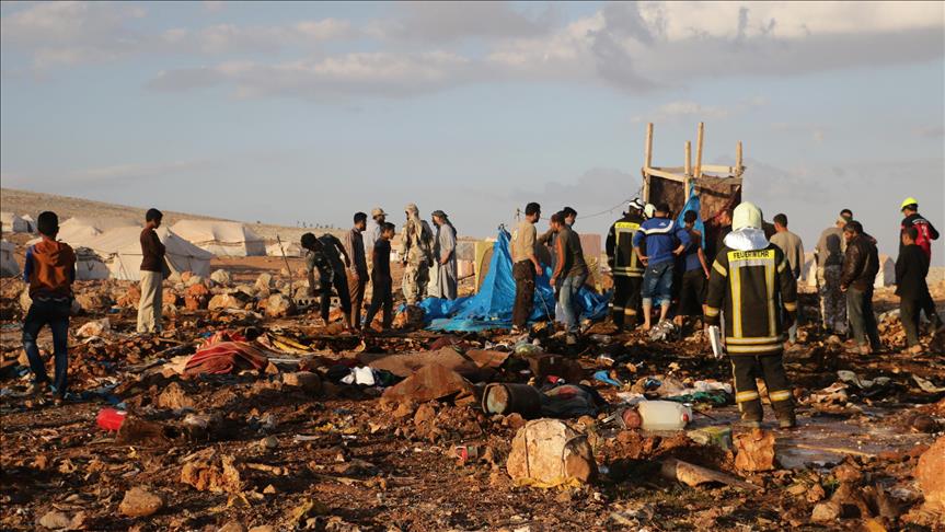 Ahmed Shakir, seorang pejabat Pertahanan Sipil, mengatakan kepada Anadolu, pesawat tempur rezim Basyar Asad menargetkan kamp pengungsi di Kamuna.