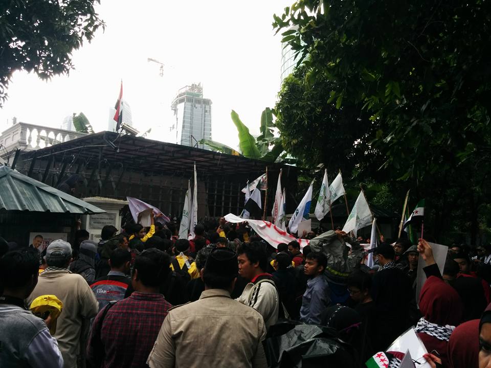 Tiga Kelompok Pengunjuk Rasa Bergantian Geruduk Kedubes Suriah