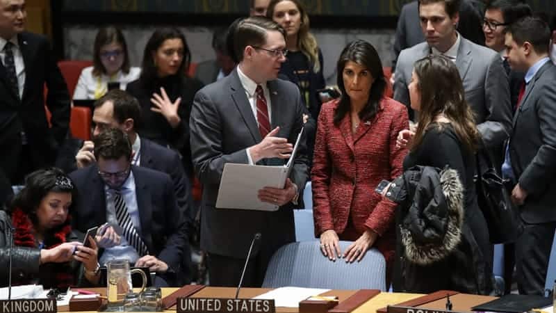 Nikki Haley, duta besar AS untuk PBB, mengatakan resolusi yang dirancang Washington “adalah minimal yang dapat dilakukan dewan keamanan untuk merespons serangan (kimia) itu”.