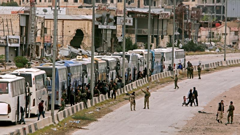Kelompok Oposisi Tinggalkan Ghouta Diperkirakan 140.000 orang masih berada di Douma, dengan persediaan makanan, air dan medis yang terbatas.
