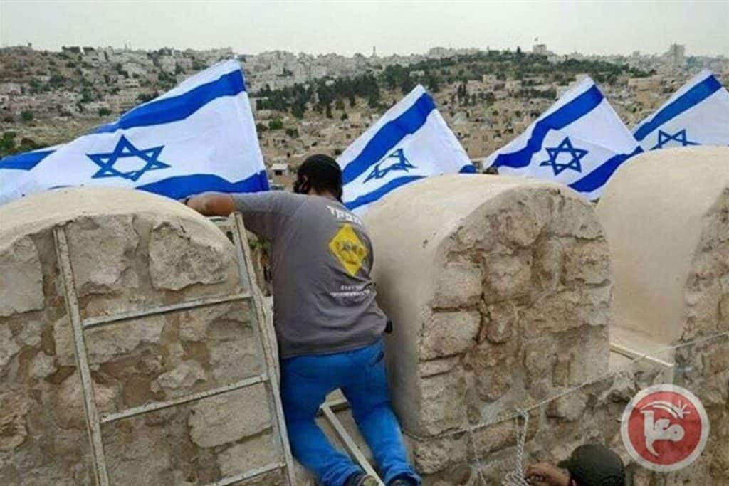 Di bawah pengawalan polisi penjajah yang bersenjata berat para pemukim ilegal memasang bendera Zionis di atas situs suci Muslim dengan tujuan untuk “merayakan Nakbah (bencana) bagi Palestina atau apa yang mereka (penjajah) sebut sebagai kemerdekaan Israel”, kata Direktur Wakaf Islam di Hebron, Ismail Abu Halawa.