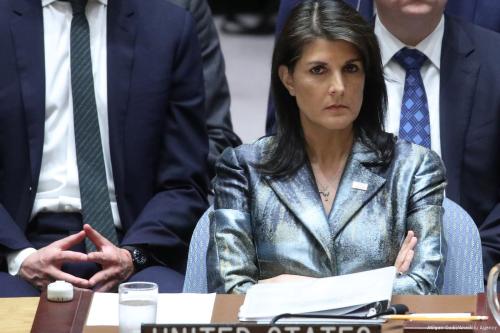 Sebagai reaksi atas pembantaian terhadap demonstran Palestina yang tidak bersenjata oleh militer “Israel”, Haley membuat klaim bahwa “tidak ada ‘negara’ yang bertindak dengan menahan diri lebih besar dari Israel”.