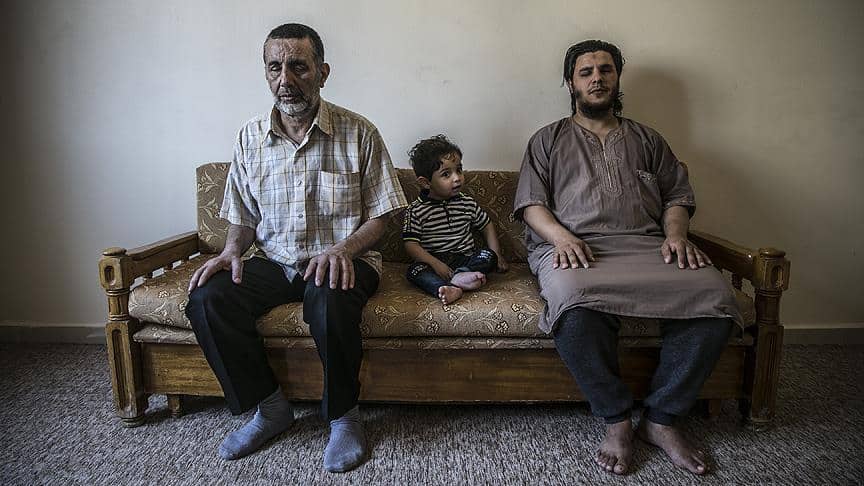Muhammad Bessam El Meydani (57), Sair Hubbolla (30) dan Mutasimbillah Abidrabbo yang baru berusia 2 tahun, semuanya menderita kehilangan penglihatan setelah jet tempur menghantam tempat perlindungan dan rumah mereka sebelum evakuasi mereka ke Turki dilakukan pada Maret dan April 2018 ini.