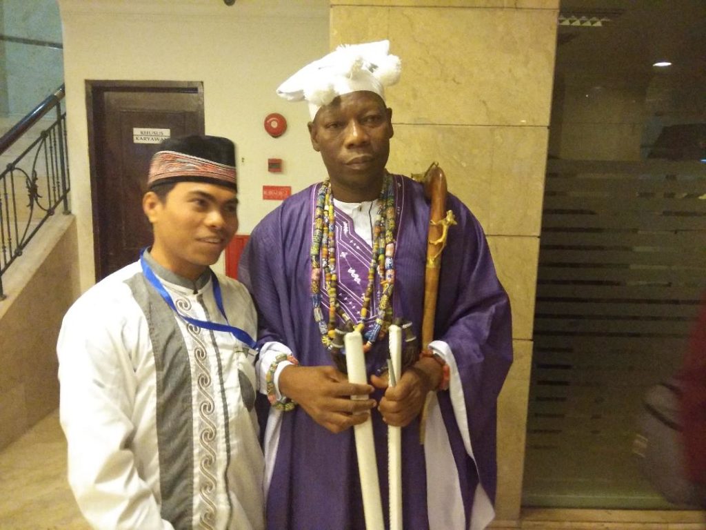 JAKARTA (SALAM-ONLINE): Seorang kepala suku dari Afrika menjadi pusat perhatian para peserta Pertemuan Ulama dan Dai se-Asia Tenggara, Afrika & Eropa yang digelar selama empat hari dari Selasa s/d Jumat (3-6 Juli 2018), di Hotel Grand Cempaka, Jakarta Pusat.