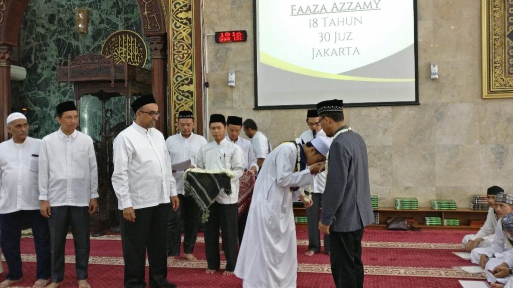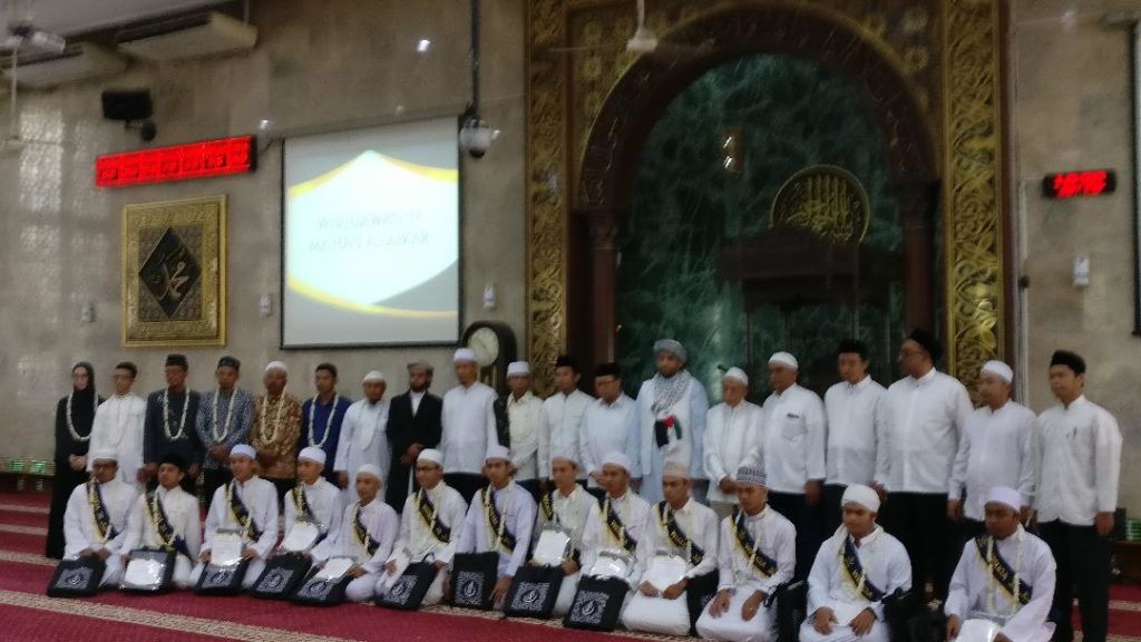 JAKARTA (SALAM-ONLINE): Ma’had Al-Askar mewisuda 126 santri tahfidznya yang terdiri dari 63 wisudawan dan 63 wisudawati. Prosesi Wisuda Santri Ma’had yang berada di bawah Yayasan Al-Askar pimpinan Fahmi Al-Askar itu berlangsung di Masjid Agung Sunda Kelapa, Menteng, Jakarta Pusat pada Sabtu 16 Syawal 1439/30 Juni 2018 pukul 09.00 sampai jelang waktu Zuhur.