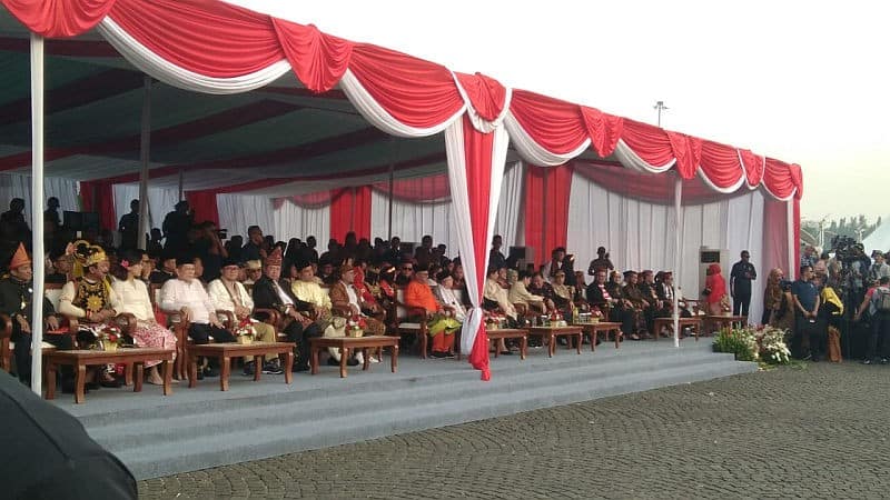 “KPU melarang atribut peserta pemilu masuk di area deklarasi tapi ternyata ada peserta yang membawa atribut partai maupun atribut paslon cawapres,” terang Jufri.
