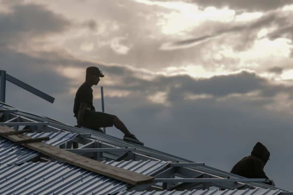 Proses pembangunan Huntara dilakukan oleh para relawan yang bergotong-royong dengan warga.