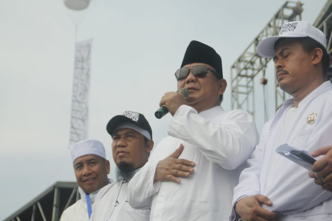 JAKARTA (SALAM-ONLINE): Calon Presiden (Capres) nomor urut 02, Prabowo Subianto hadir dalam acara Reuni Akbar Mujahid 212 di Monas, Jakarta, Ahad (2/12/2018).