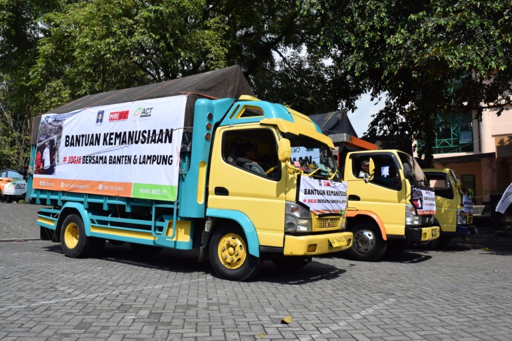 Sebanyak 3 truk berisi pangan dan logistik diberangkatkan dari halaman Universitas Islam Indonesia. Dari halaman UII, rombongan truk tersebut menuju posko induk di Kecamatan Labuan, Kabupaten Pandeglang, Banten yang dijadwalkan sampai pada Selasa (1/1/2019).